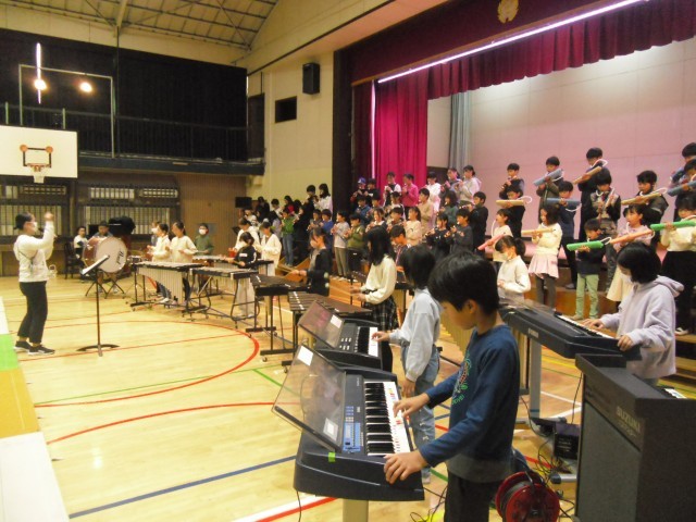 各学年、体育館での練習が始まっています。舞台に上がると大きな声を出す必要があります。また、音楽や照明も入ってくると、緊張しますね。来週の本番に向けて、一日一日仕上げていきます。
