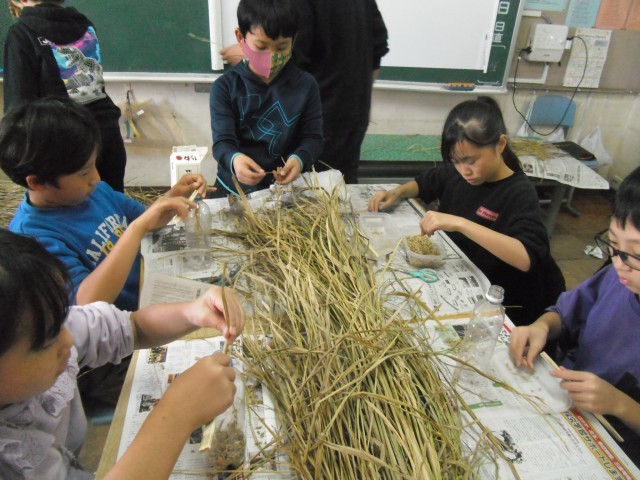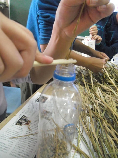 秋晴れが続き、無事にここまできました。それぞれが考えた方法で、割りばしや牛乳パック、定規やハサミ、そして手をつかいながら、作業をしました。大変だけど、やりがいのある時間でしたね。