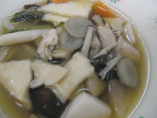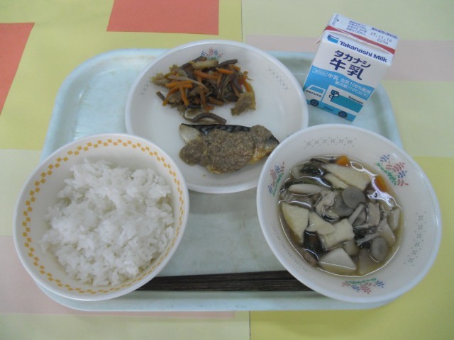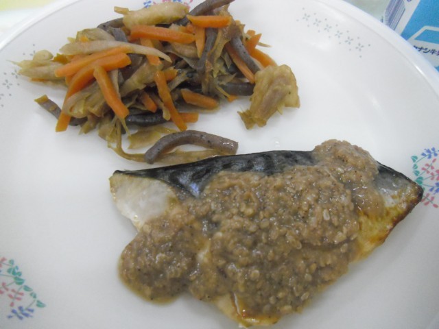 ごはん さばのごまだれがけ きんぴら せんべい汁