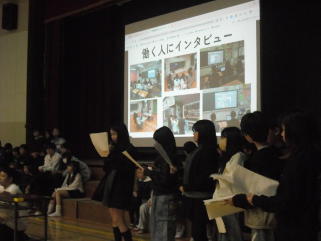 最後は6年生でした。「みなさんは夢がありますか?」自分たちの将来・未来へ向けて、仕事ややりがいを調べていくキャリア教育の流れの一つとしての発表になります。実際にインタビューしたり、キッザニアで体験したりしたことなどまとめて発表していきました。明日は各ブースに分かれて行う予定だそうです。