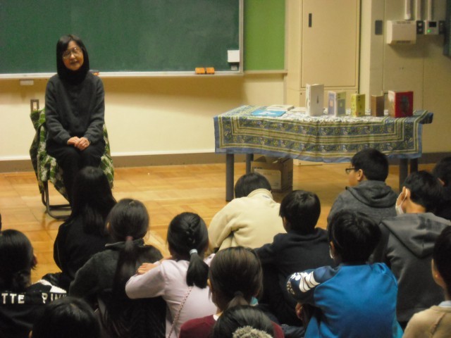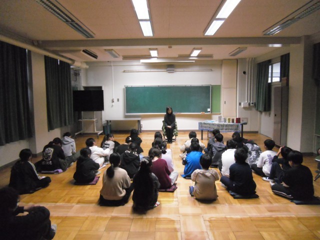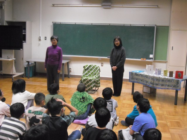 先週の21日(金)の3年生から始まっています。今日は5年生に向けてでした。毎年、日本や世界の昔話・物語を本を見ずに語ってくれます。12月上旬までかけて、すべてのクラスで実施予定です。