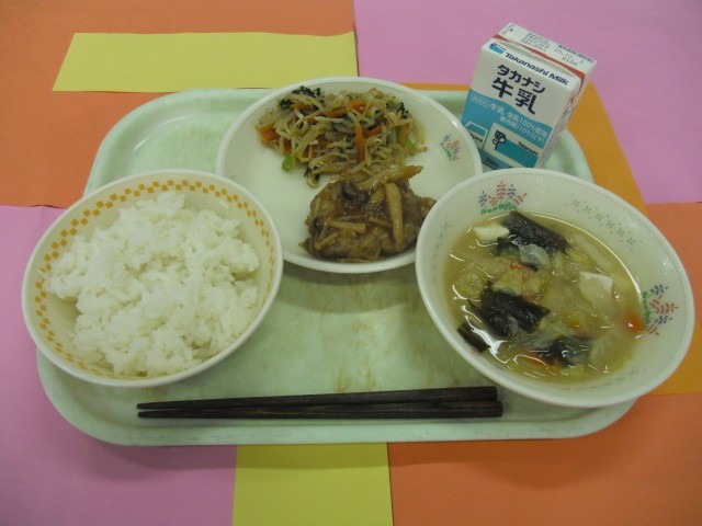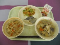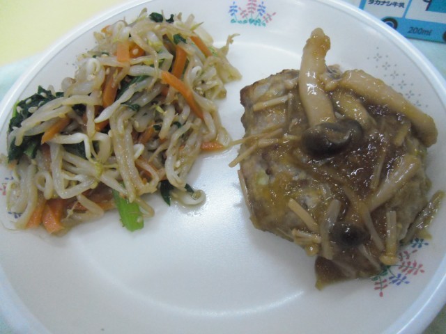 ごはん 和風ハンバーグ 野菜のからし和え 白菜と油揚げのみそ汁