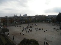 これは「フリスビンゴ!」という、ねらったところにフリスビーを入れるもので、協力して、考えて取り組む活動です。作戦や役割を考えたり、話し合ったりしながら、協力することなどを身につけていきます。
