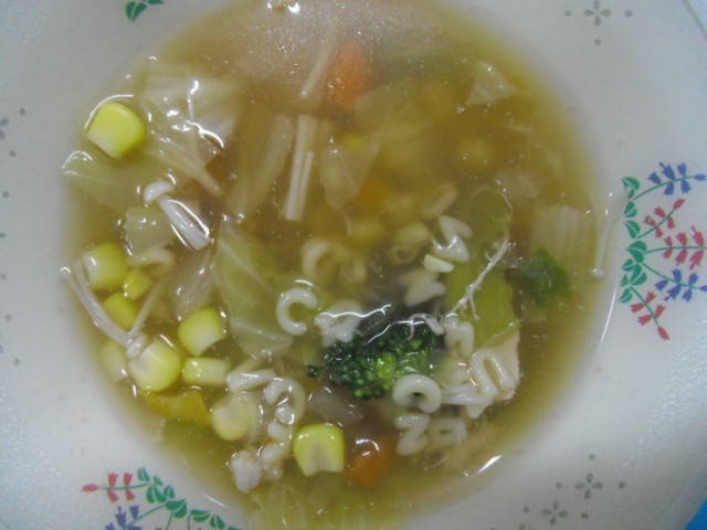 焼きカレーパン 野菜のピクルス ABCパスタスープ