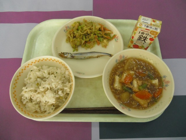 大根菜飯 焼きししゃも 野菜のごまあえ 津田さんちの大根のそぼろ煮