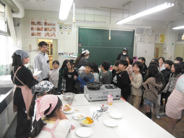 3年生は来年度から参加できる「クラブ活動」。今日は見学だけの3年生。家庭科クラブの「クレープ作り」や科学クラブの「石けんつくり」など、ワクワクしながら見ていました。