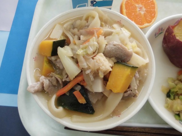 かぼちゃのほうとう きのこのおひたし 吉川さんちの焼きいも みかん