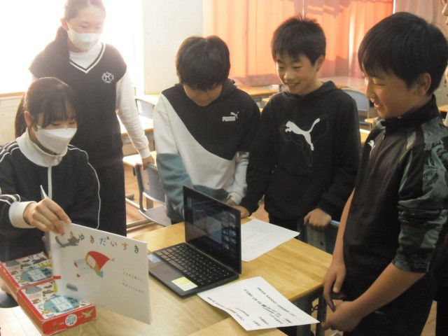 給食の時間を活用しての活動です。今日は冬、今の季節にピッタリのお話でした。