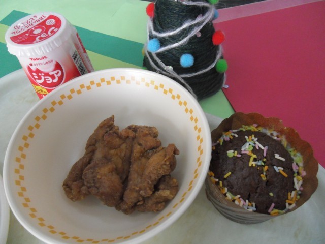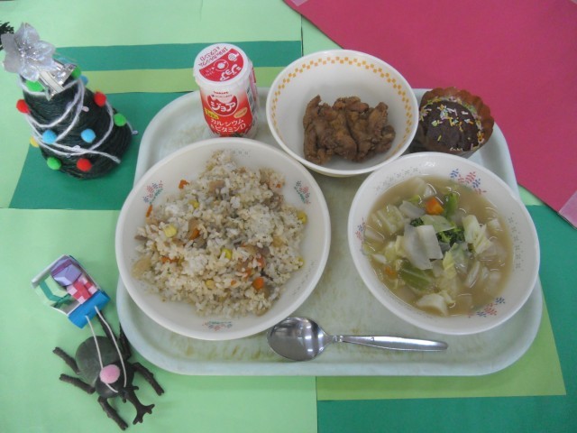 今日は2学期最後の給食です。世界のクリスマスではいろいろなものを食べる習慣があります。