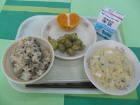 カレーピラフクリームソースがけ クルトン入りサラダ みかん