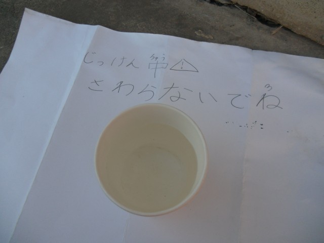 さて、昨晩から氷を作る実験?です。どこに置けば、できるのか、それぞれが考えた場所に一晩置きました。結果は、大成功。紙コップにいっぱい入れた水が見事に凍っていました。とても寒かったのですね。