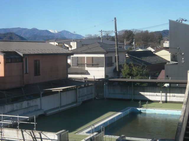 冬といえば・・・この冬、一番寒さになった今日の朝。富士山もくっきり見え、プールも凍っていました。
