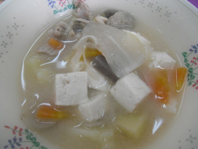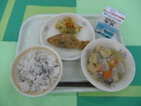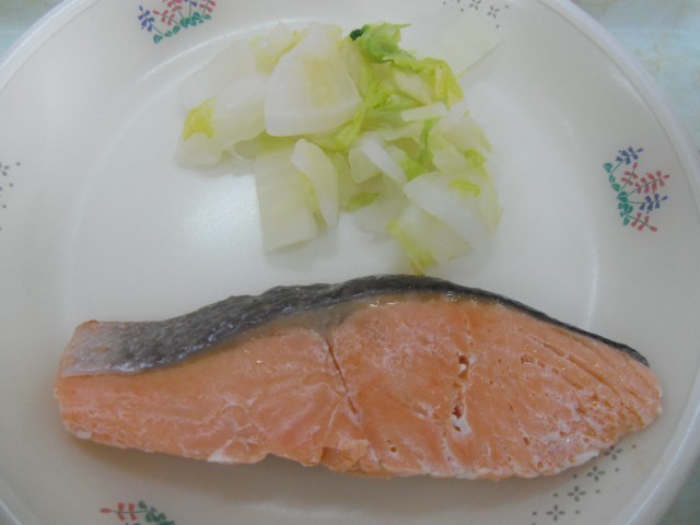 おにぎり さけの塩焼き 白菜の浅漬け 豚汁