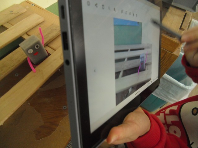 「すきまテープ」やモール、シールを使って、「すきまちゃん」を作りました。お気に入りのすきま、居場所を見つけて「はいポーズ!」撮影します。すてきなすきま、すてきなポーズを見つけて楽しんでいました。