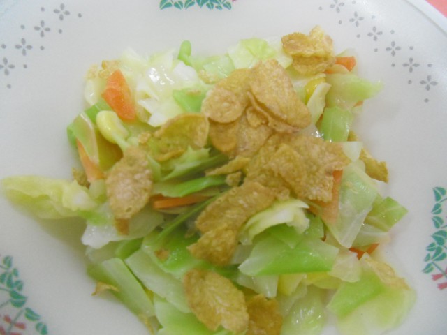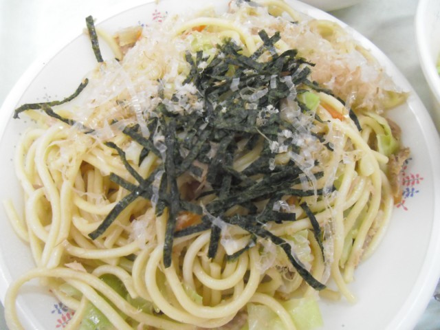 和風スパゲッティ コーンフレークサラダ チョコチップケーキ