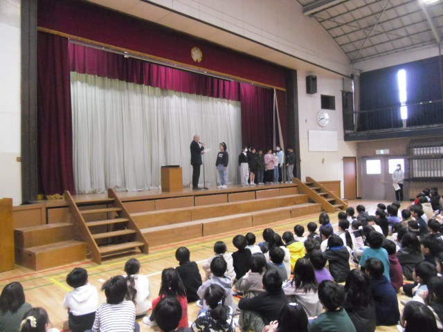 3月になりました。1年の締めくくりです。家族や先生方、見守り安全ボランティアの方々などに「感謝」の気持ちを込めて「ありがとう!」と伝えてほしいという話をしました。