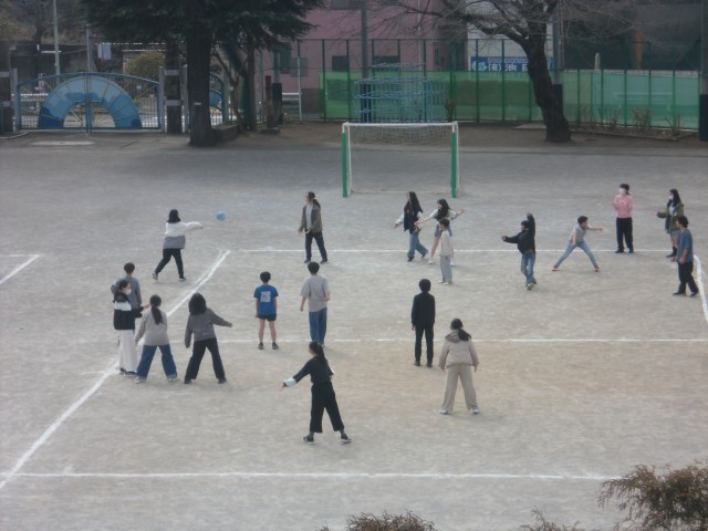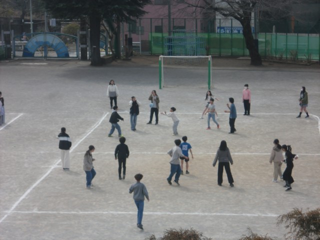 校庭から楽しそうな声が聞こえてきました。卒業を前に、6年生が学年で楽しそうなことをしていました。ドッジボール?今までの運動会で踊った曲や音楽会で演奏した曲が流れています。自然と体が覚えていて、踊っていましたね。ほかにも、しっぽとりゲーム?など楽しんでいたようです。