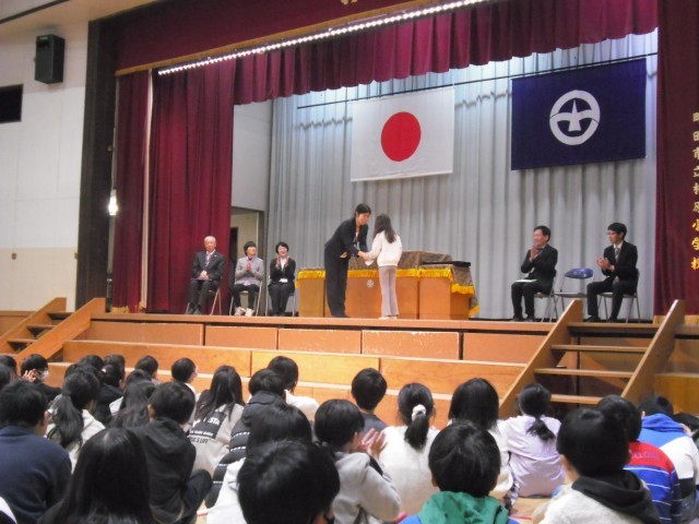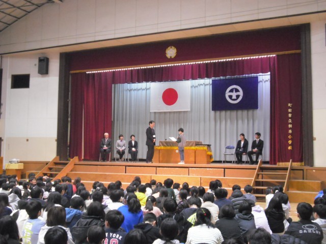 修了式に続けて、離任式が行われました。相原小学校でお世話になった7名の先生・職員の方々へのメッセージ、離任される方からのお話がありました。新しい場所でのご活躍を願っております。