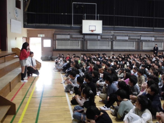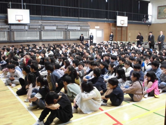 続いては始業式。毎年ドキドキワクワクの時間です。担任の先生の発表です。1年間お互いによろしくお願いします。転入生の紹介もありました。