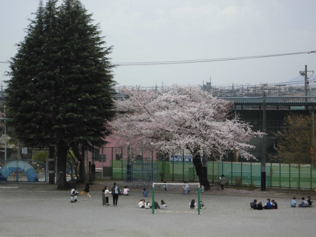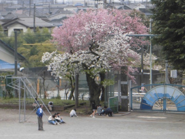 4年生も校庭に出て、桜の観察です。あたたかい一日でした。