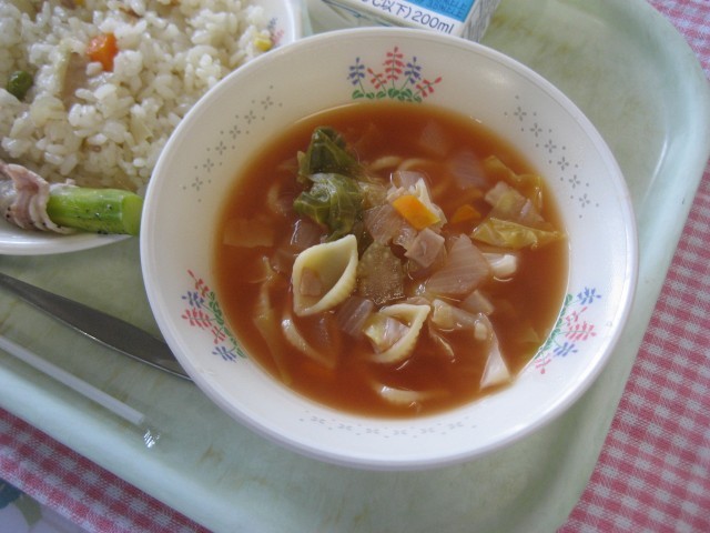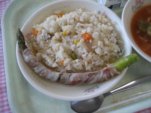 春色ピラフ アスパラガスのぶたばら巻き ミネストローネ