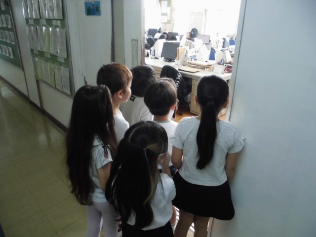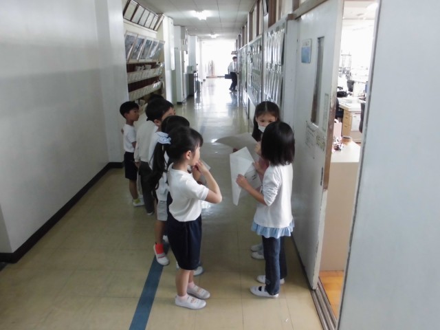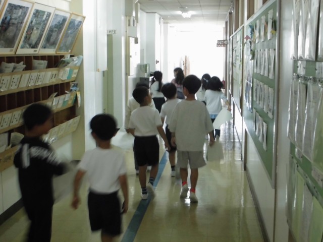 2年生のお兄さんお姉さんが、学校の中をグループごとにご案内。とっても上手に案内できていました。
