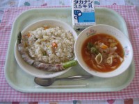 調理員さんが一つひとつ、丁寧につくってくださったので、みんなでおいしくいただきましょう。(給食委員会お昼の放送より)