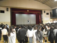 FC町田ゼルビアからコーチを招いてのサッカー教室でした。朝降った雨の影響で校庭は使えず、体育館での開催となりましたが、みんな楽しくボールを追いかけていました。