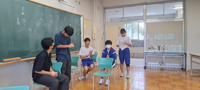 9年生の修学旅行もいよいよ今月末と近づいてきました。班で行動するにあたりトラブル対応を寸劇クイズ形式で学びました。