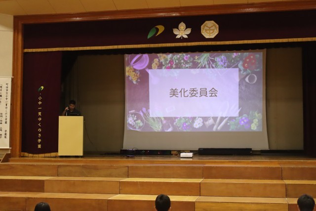 10月8日(水)に行われた、後期一斉委員会の報告を行いました。8年生の新委員長から今後の予定の話がありました。各委員会で実施される取り組みを大切にし、よりよい武蔵岡中学校を作り上げてほしいと思います。
