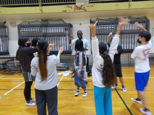 ALTの先生が7名来校し、体育館でイングリッシュフェスタを行いました。3つのブースに分かれ、レストランでの注文や海外の遊びを体験しました。様々な国のALTの先生たちと英語でコミュニケーションをとり、とても楽しんでいました。