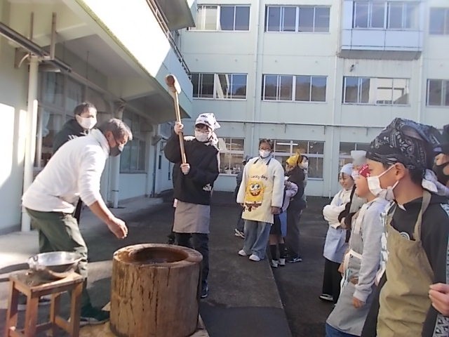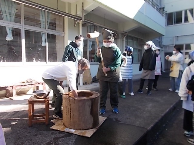 一人ずつ順番に杵でお餅をついている時、皆そろって「よいしょ!」と元気に掛け声をかけていたのが印象的でした。