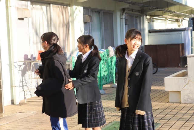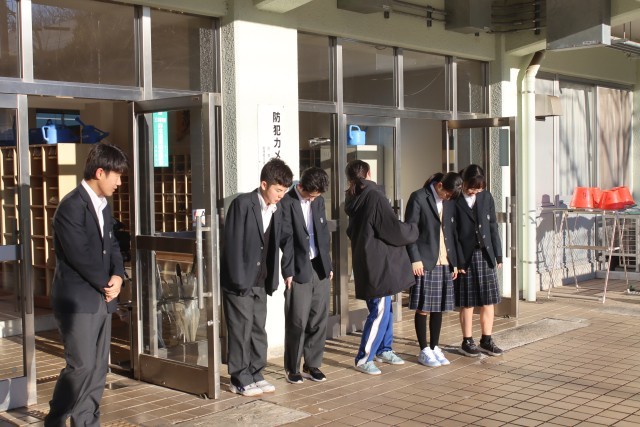 寒い中昇降口前で元気な声であいさつをしていました。多くの児童・生徒があいさつを返しており、明るい朝を迎えることができていました。