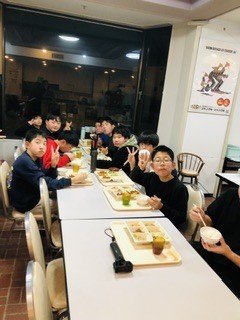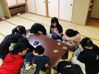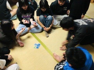 2日目の夕ご飯です。今日もみんなモリモリ食べています。夕食後の自由時間では、みんなでカードゲームをして楽しみました。