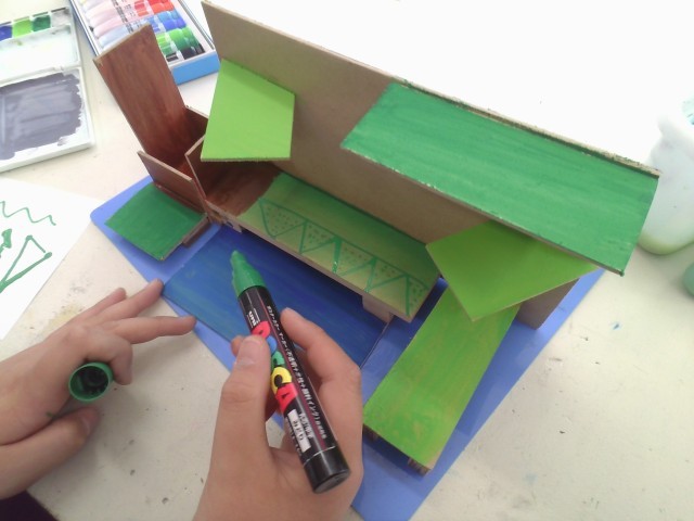 色を塗って、模様も描いて、だんだんと自分だけの特別な作品に仕上がってきました。