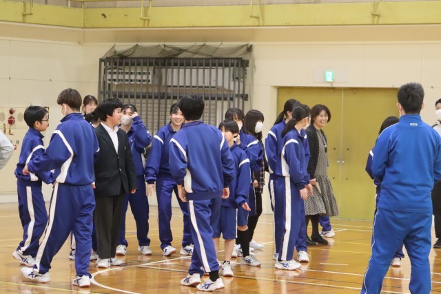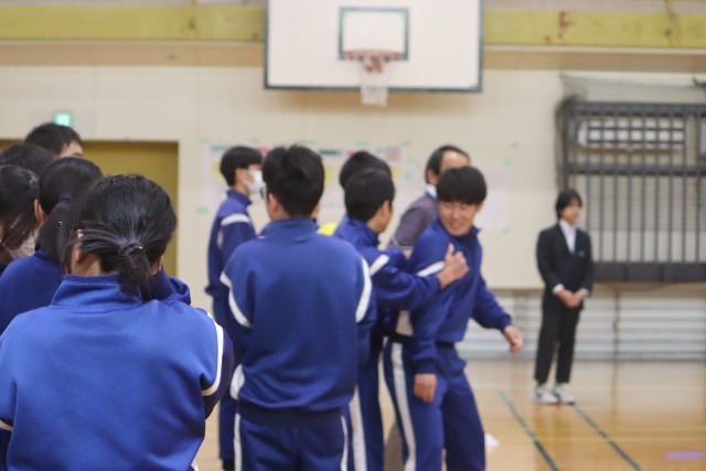 体育委員主催のNewカラッポdayが昼休みに行われました。今年度最後のNewカラッポdayは、ボールを転がして当てる「中あて」を実施しました。賑やかな雰囲気の中で行うことができました。生徒・教員が混ざり合いとても温かい会となりました。