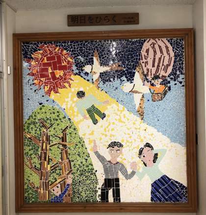 第19問の正解は、第1体育館に向かう渡り廊下の入り口にある1991年の卒業制作でした。校内には、多くの卒業制作品があることがわかりますね。