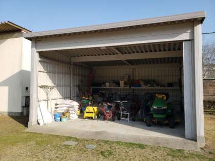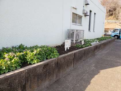 日中の暖かさから、春の訪れを感じます。花壇の花も大きくなってきました。これからの芝生の手入れを行う準備として、倉庫を掃除しました。