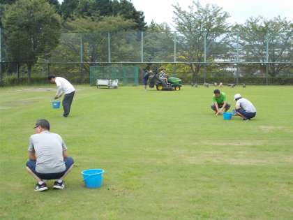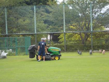 炎天下の元、参加者10人で、雑草取りと芝刈りを行いました。
