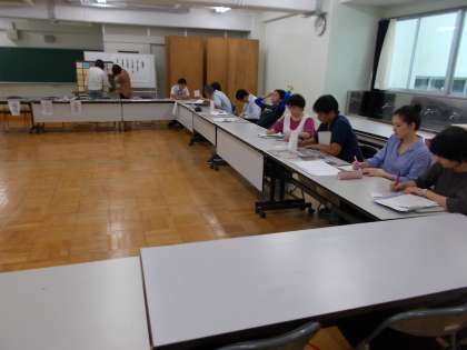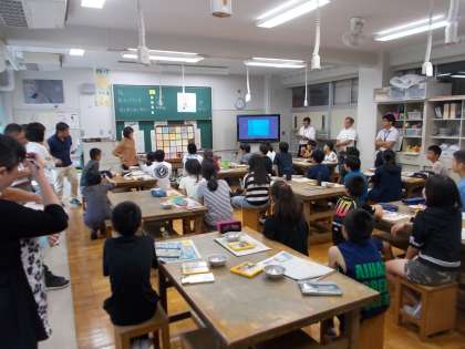 研究授業では、特に、「聞く力」を育てることを重視して授業を工夫し、その後、小中の教員が授業についての協議を行い、講師の先生のお話を伺い、日々の授業改善に生かそうとしています。