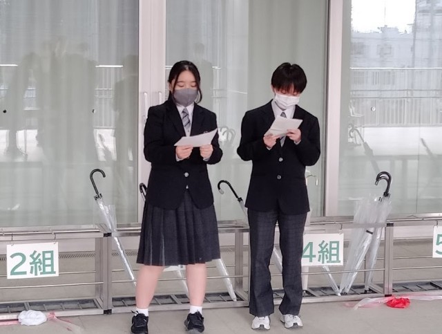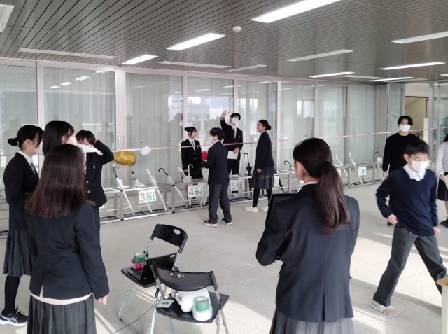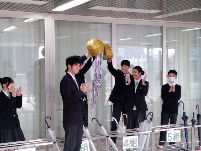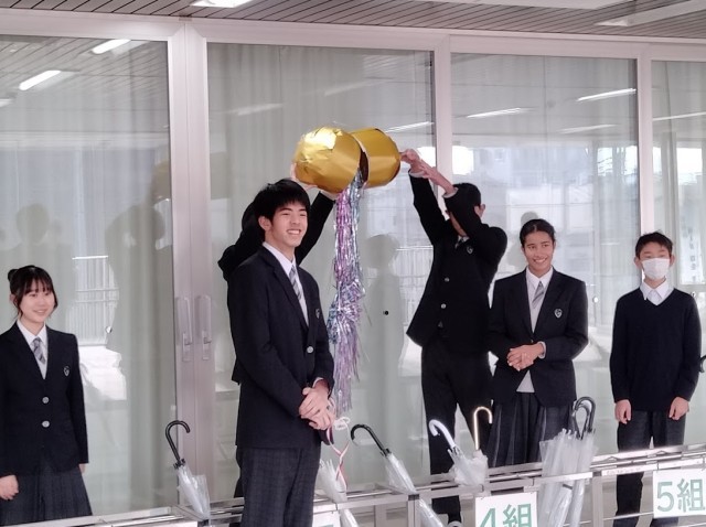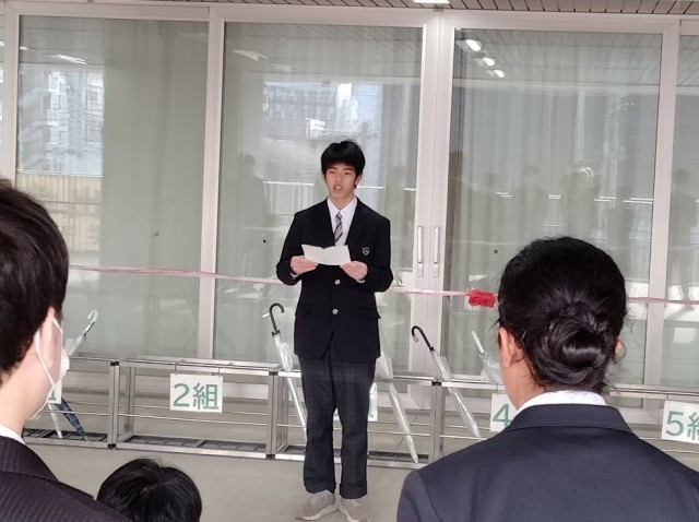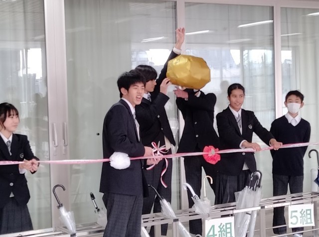 先週の生徒会朝礼時の告知通り、「交流テラス通り抜け開通式」が盛大に行われました。 新旧生徒会役員が和気あいあいと、朝早くから準備に余念がありませんでした。中継はオンラインで全生徒に配信されました。
