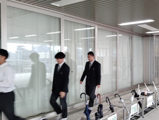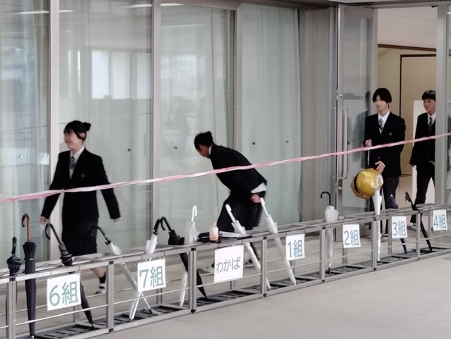 ①右側通行!②走らない!③立ち止まらない!④傘立てを飛び越えない!⑤一列になって通行する! きれいに使うことを心掛けてください。