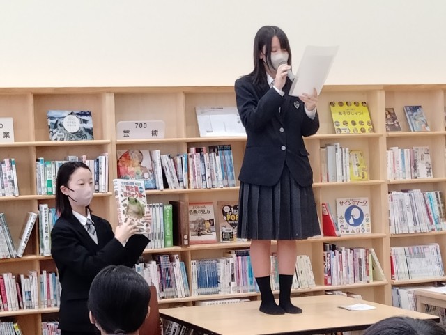 師走の風物詩となった図書委員会による「ビブリオバトル」が昼休み図書室で開催されました。