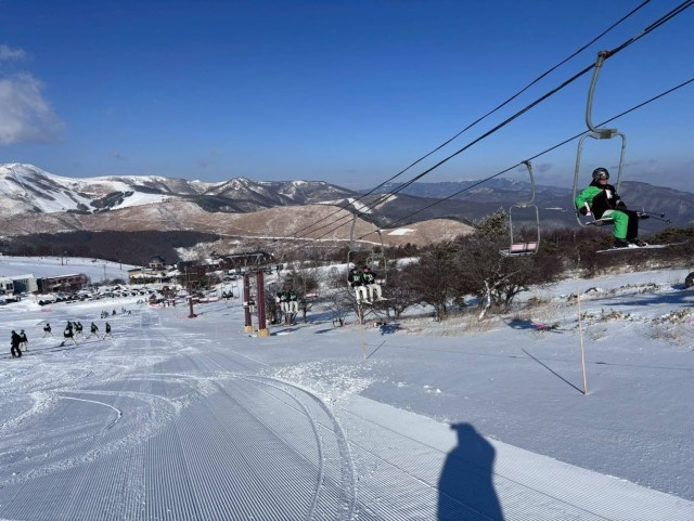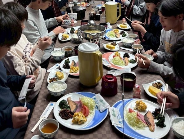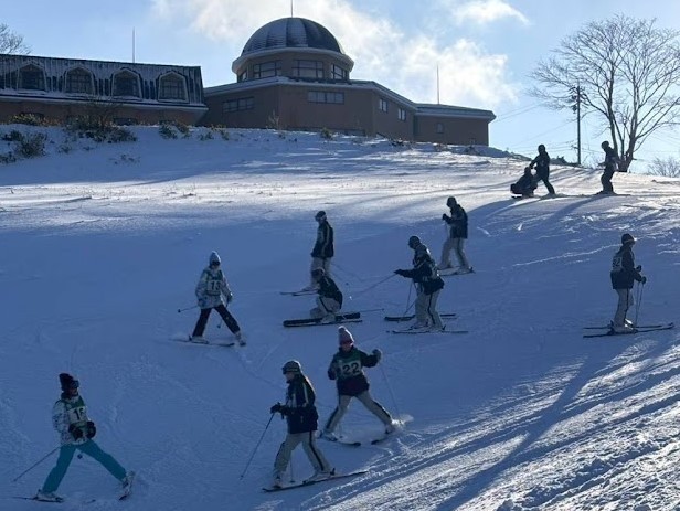 スキー教室2日目、絶好の晴天に恵まれました。美味しい朝食の後、ゲレンデに飛び出した生徒たち、カレーライスの昼食をはさみ、思いっきりスキーにチャレンジしました!予想に反してこんなにスキーが暑いとは、これも初めての体験でした!!