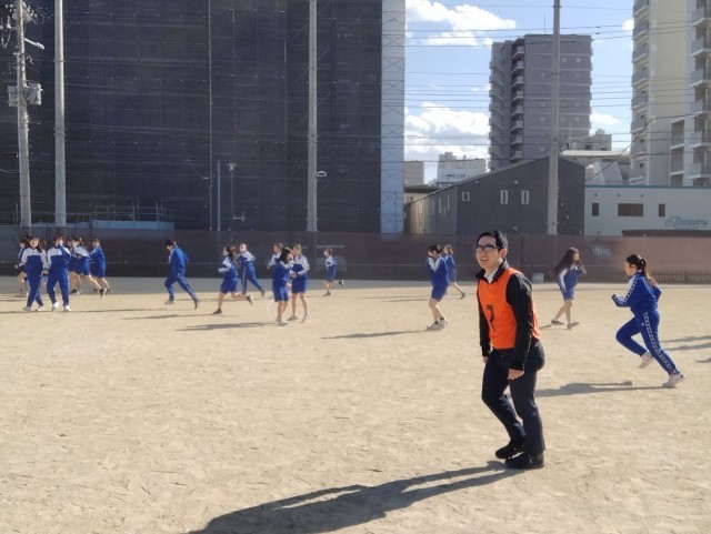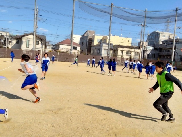 最終日の今日は、先生方が鬼となって生徒を追いかけるというものです。普段の授業ではビシバシ鬼役でも、日頃運動不足の先生方に生徒が捕まるとは思えないのですが?!