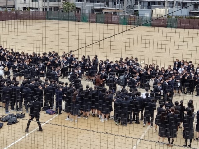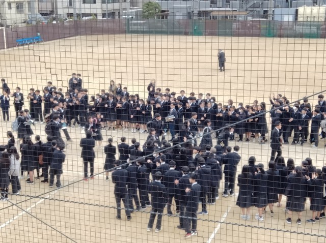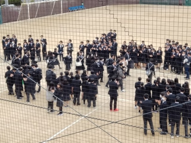 卒業式終了後は、去年雨で出来なかった卒業生の送り出しを校庭で行いました。直前の最後の学活で感極まった卒業生たちを、在校生と保護者の皆様が温かく送り出しました!!