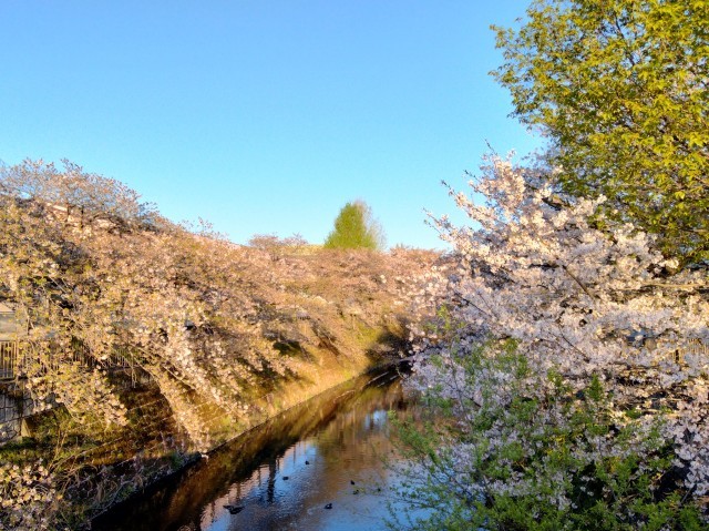 写真は今朝の恩田川沿いの桜の風景です。先週の雨風で大半は散ってしまいましたが、なんとか今日まで持ち堪えてくれました。今日の晴天と合わせて、どうもありがとう!