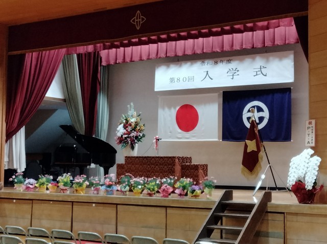 第80回の記念すべき入学式が執り行われました。保護者の皆様、本日は誠におめでとうございます。新入生は、一昨日始業式を終えたばかりの2・3年生の先輩や先生方が、心を込めて準備した会場で、元気いっぱいの声を体育館中に響かせていました。式終了後は校庭で、「入学式」の立て看板と一緒に、親子記念撮影会が行われました。