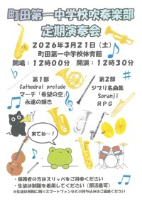 ★町田第一中学校吹奏楽部定期演奏会日時: 3月21日(土) 12:00開場 12...