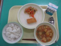 本日の給食です。ごはん、牛乳、町田産キャベツの八宝菜、青のりポテト、ミニトマト ...